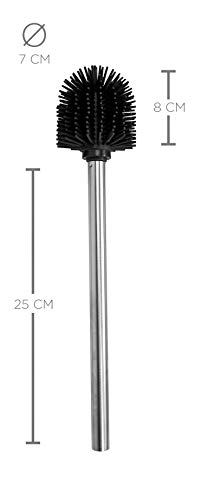 Klinoo - Set di 2 scopini per WC, con manico in acciaio inox, antiruggine, in silicone nero, 2 pezzi