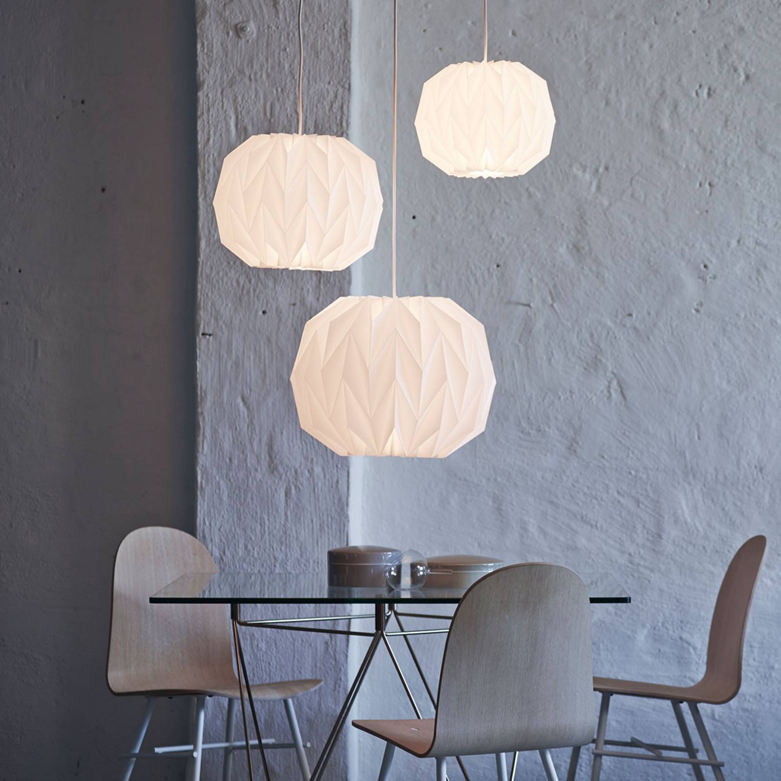 Lampada a sospensione di design 157 piegata a mano Il design della lampada a sospensione 157 è firmato dal designer e architetto danese Andreas Hansen. Per Le Klint ha ideato nuovi e ingegnosi paralumi con pronunciate pieghettature che si differenziano nettamente dai modelli precedenti dell'azienda in classico stile plissettato. La sfaccettata composizione del paralume elimina ogni forma di abbagliamento e diffonde una luminosità decisamente suggestiva. Come ogni paralume pieghettato di casa di Le Klint, anche quello della lampada a sospensione 157 viene lavorato a mano e quindi ogni esemplare è un pezzo unico. Fondata nel 1943 a Copenhagen da Tage Klint, la società Le Klint produce da sempre lampade con paralumi piegati a mano e collabora con molti designer di fama internazionale. La tradizionale tecnica di piegatura dei paralumi viene combinata con la moderna produzione di Le Klint e le creazioni di luci vengono costantemente adattate alle nuove tecnologie.