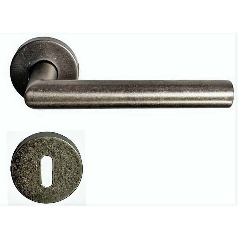 Belle maniglie in acciaio inossidabile 304 "SILVER". Colore argento antico. Si abbina a qualsiasi interno classico o anche moderno. Caricato a molla. Quadrato di 7 mm. Coppia di rose "SILVER" Diam. 53 mm: Chiave L - Foro cilindro o Condanna, disponibile a scelta. Matériau: INOX Couleur: ARGENT