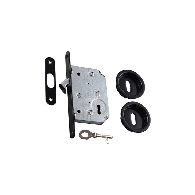 Serratura a Gancio A Chiavi. Testa nera 160 x 16 mm. Riscontro nero. Coppa sporgente: 10 mm Con anello incassato nero. Custodia H: 100 mm;