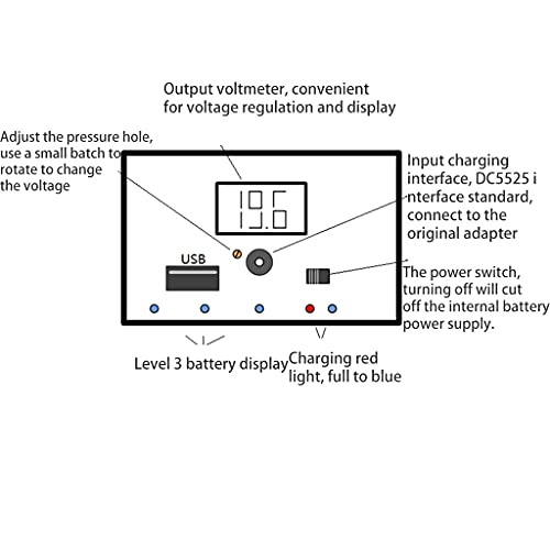 ♥Ingresso 12V-24V 5,5x2,5mm, visualizzazione a LED della tensione di uscita, con interruttore ON OFF, uscita porta 5,5x2,5mm regolabile 12V-24V, uscita USB 5V, può alimentare 2 dispositivi contemporaneamente, potenza di uscita 65W, Adatto per laptop max cellulare tablet wifi Router LED Strip CCTV Camera e altro dispositivo 5V 12V-24V.