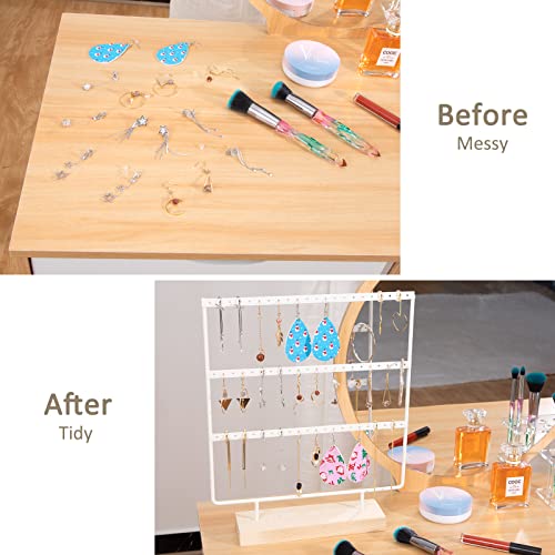 Kmbcove Supporto per Orecchini 66 Fori Espositore per Orecchini in Metallo Elegante Stand per Gioielli per Orecchini a Bottone Orecchino Bianco