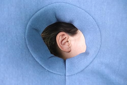 KMINA - Cuscino con Buco Orecchio, Cuscino Antidecubito per Orecchio, Cuscino per Orecchie da Piercing per Dormire, Cuscinetto Orecchini Riutilizzabile Blu - Made in Europe