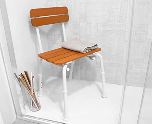 KMINA - Sedia Doccia Anziani (Effetto Legno), Sedia Bagno per Anziani, Sgabello Doccia, Sedile per Vasca da Bagno Antiscivolo, Sedia per Doccia Disabili Regolabile