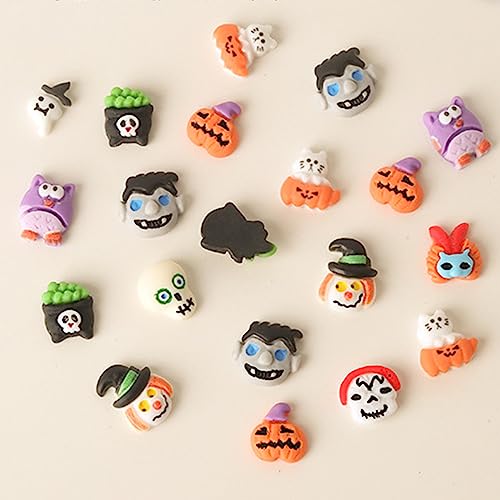 Kmobruzy 20 Pezzi Ciondoli per Unghie in Resina Halloween Zucca Strega Teschio Decorazioni per Unghie in Resina 3D Gioielli per Unghie per Donne Ragazze Gioielli in Resina per Unghie