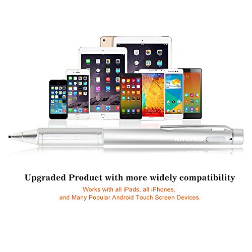 Kmoso Penna di Precisione Capacitiva Attiva per iPad Stylus Digitale per Touch Screen, Punta Ultra Sottile da 1.45mm per Apple iPhone, iPad Mini, Android Cellulari Tablet(Argento)