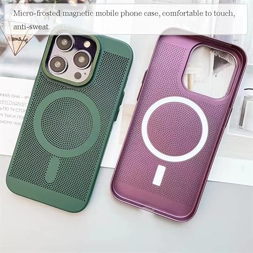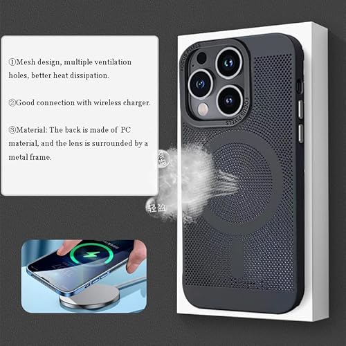 Knachohel Heat Dissipation Steel Mesh Magnetic Attraction Case Cover For Iphone Cooling Breathable Mesh Wireless Charging Case, Frosted Magnetic Attraction Case (Black,for iPhone 14 PRO MAX)