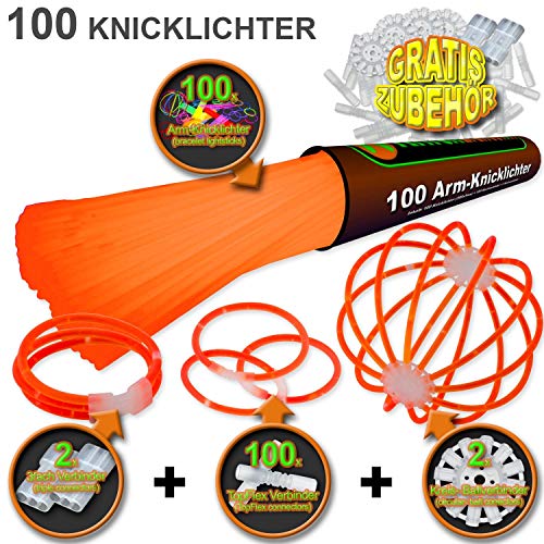 KnickLichter - 100 Bastoncini Fluerescenti Starlight - ARANCIONE MANDARINO - Kit con 202 pezzi per creare forme diverse