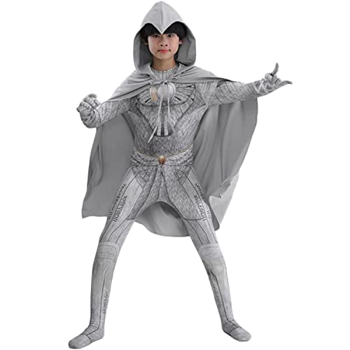 KFGJ Moon Knight Costume Bambino, Cosplay Tuta Moon Knight Costume Movie Fans Stretto, con Mantello Supereroe Fans Costumi, Bambini Body, Role Play Outfit Stretto for Halloween Masquerade Party, 140