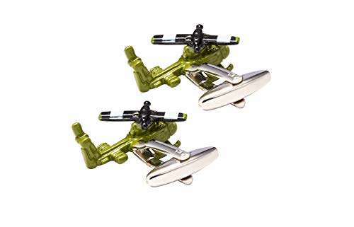 Knighthood Gemelli da uomo con elicottero militare, colore verde, nero, bianco, per camicia da uomo, idea regalo per matrimonio con confezione regalo, Acciaio inossidabile