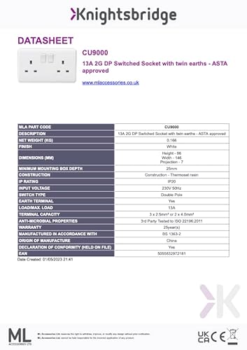 Knightsbridge CU9000 plastica Bianca, Bordo Curvo, Socket - Double DP