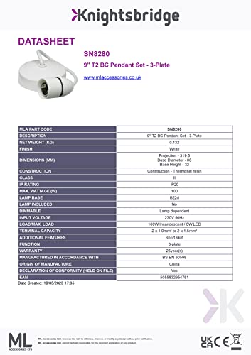 Knightsbridge Standard White Accessories Rosa da soffitto 9 in per lampade BC (Bayonet), Bianco