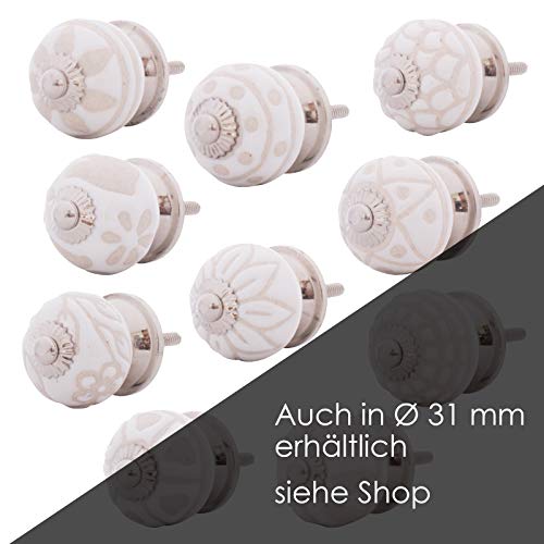 Knober Set di 10 pomelli per mobili, in ceramica, stile rustico, shabby chic, colore: bianco