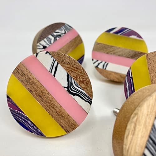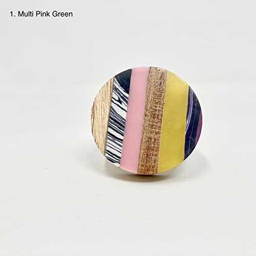 Knobs By Blossom Arty - Pomello per anta in resina e legno di mango, realizzato a mano per armadietto, maniglia per armadio (1 multi rosa verde)