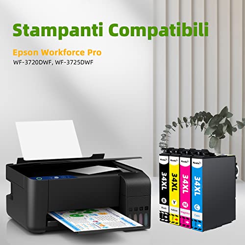 Koala Cartuccia d'inchiostro Compatibili per Epson 34 XL 34XL Multipack per Workforce Pro WF-3720DWF WF-3725DWF Stampante (2 Nero, 1 Ciano, 1 Magenta, 1 Giallo, 5 pièces)