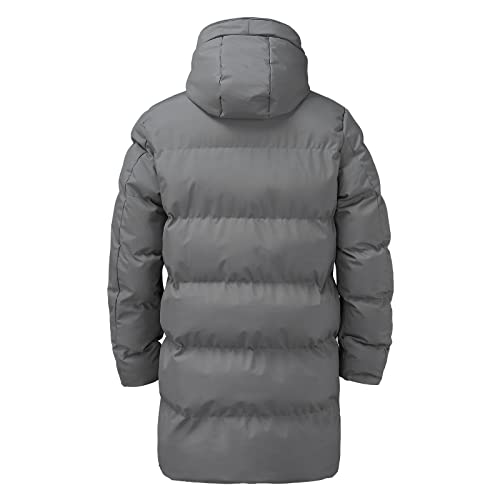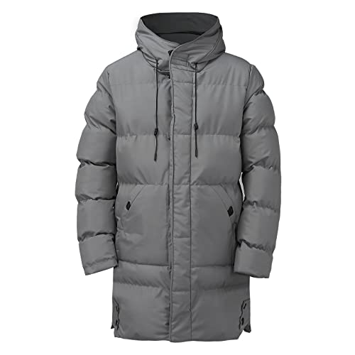 Kobilee Cappotto invernale da uomo, lungo, caldo, con cappuccio, slim fit, taglie grandi, per esterni, trapuntato, giacca invernale, grigio, XXXXL
