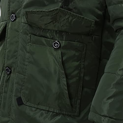 Kobilee Giacca invernale da uomo con cappuccio, parka invernale caldo, spessa, leggera, trapuntata, giacca invernale, Verde militare, L