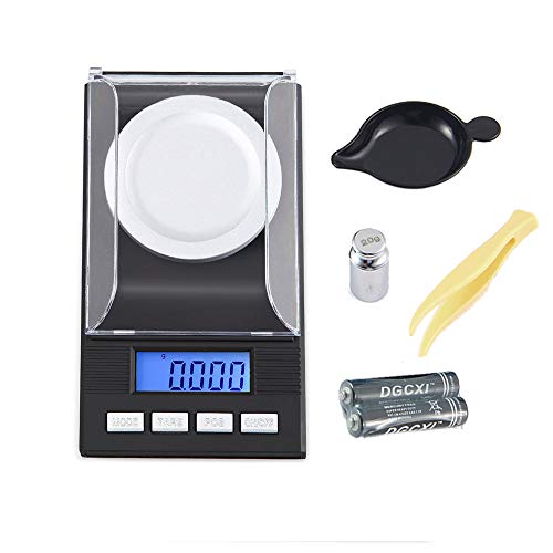 KOBWA 50 X 0.001g Bilancia Digitale Milligrammi, Bilancia Milligrammo Precisione Tasca Scale Gioielleria Diamantata con Calibrazione del Peso, Pinzetta E Base di Pesatura (50g)