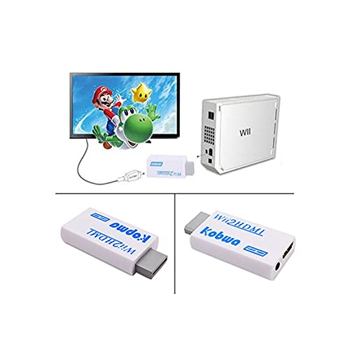 Kobwa HDMI convertitore adattatore per wii a HDMI (Wii2HDMI) 1080P, 720P Full HD TV Audio con connettore HDMI/3,5 mm stereo jack audio bianco