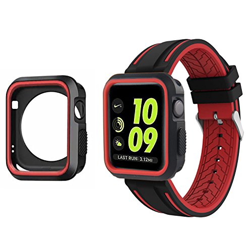 KOBWA, custodia per Apple Watch con cassa da 38/42 mm, morbida copertura antiurto e infrangibile caratterizzata da 2 colori, custodia protettiva in poliuretano termoplastico per Apple Watch/iWatch, modelli Watch, Sport, Serie 2 e Serie 1