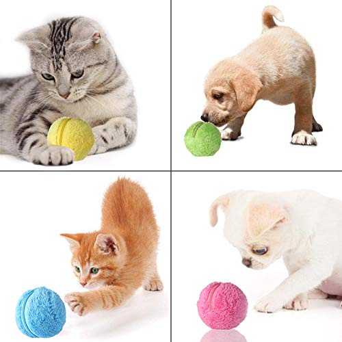 KOBWA Magic Rullo per Cani Electric Ball Cane Giocattolo Mini aspirapolvere robotico, Divertente Automatico rotolamento e Rotazione Palla Giocattolo per Cani con 4 Color Ball Cover