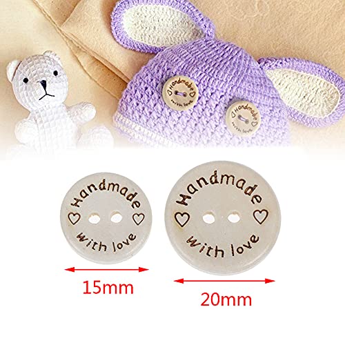 KOCAWIS 200 bottoni rotondi in legno naturale pulsante di forma rotonda fatto a mano pulsanti amore per cucito fatto a mano e decorazioni fai da te 15 mm 20 mm