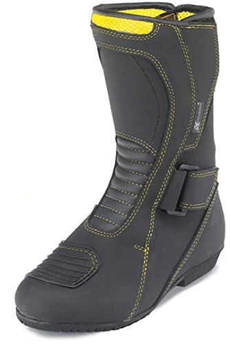 Materiale esterno: pelle bovina opaca, fodera in tessuto giallo con membrana Hipora