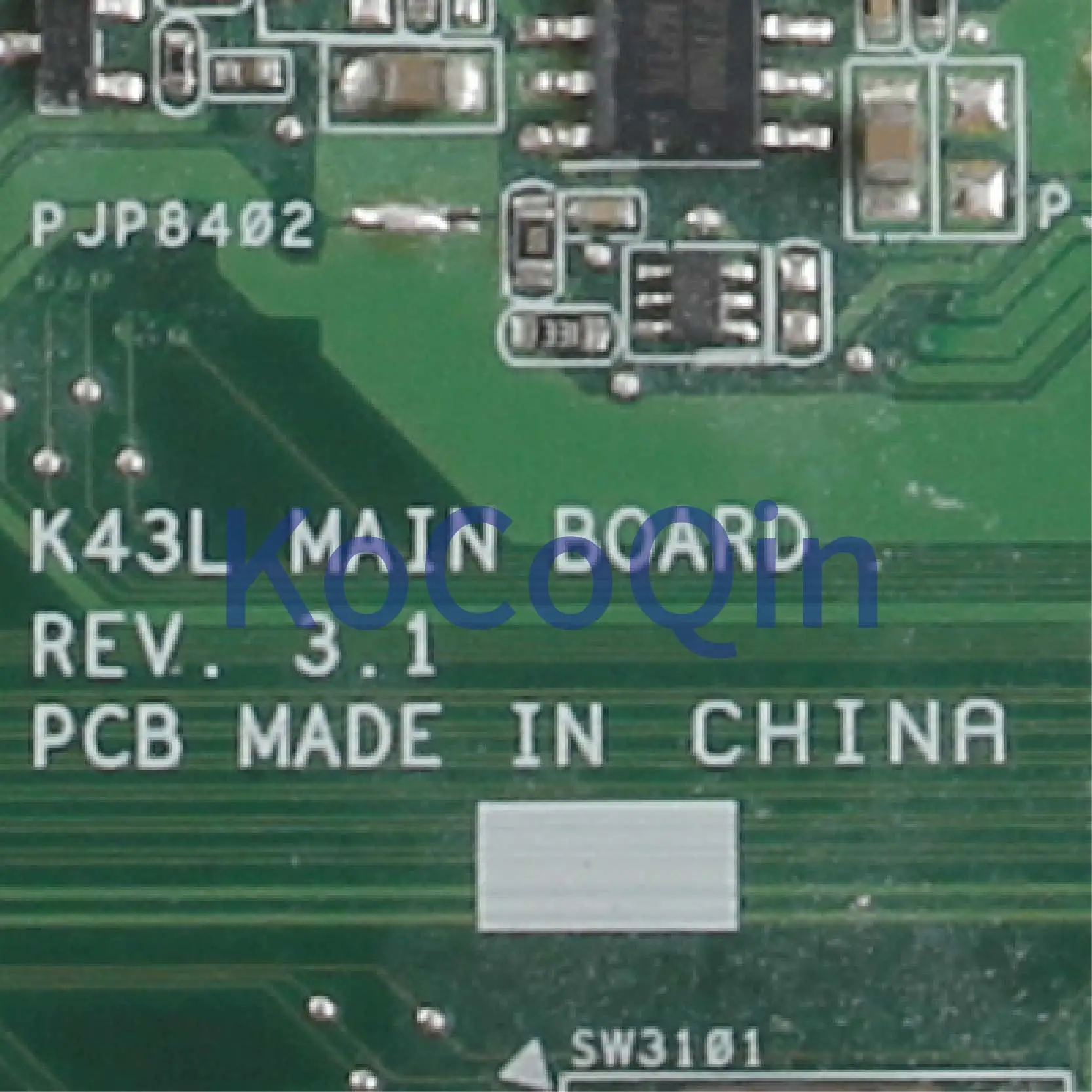 KoCoQin Laptop motherboard For ASUS K43L X44H X84H K84L K43L K43LY Mainboard REV 3.1 HM65