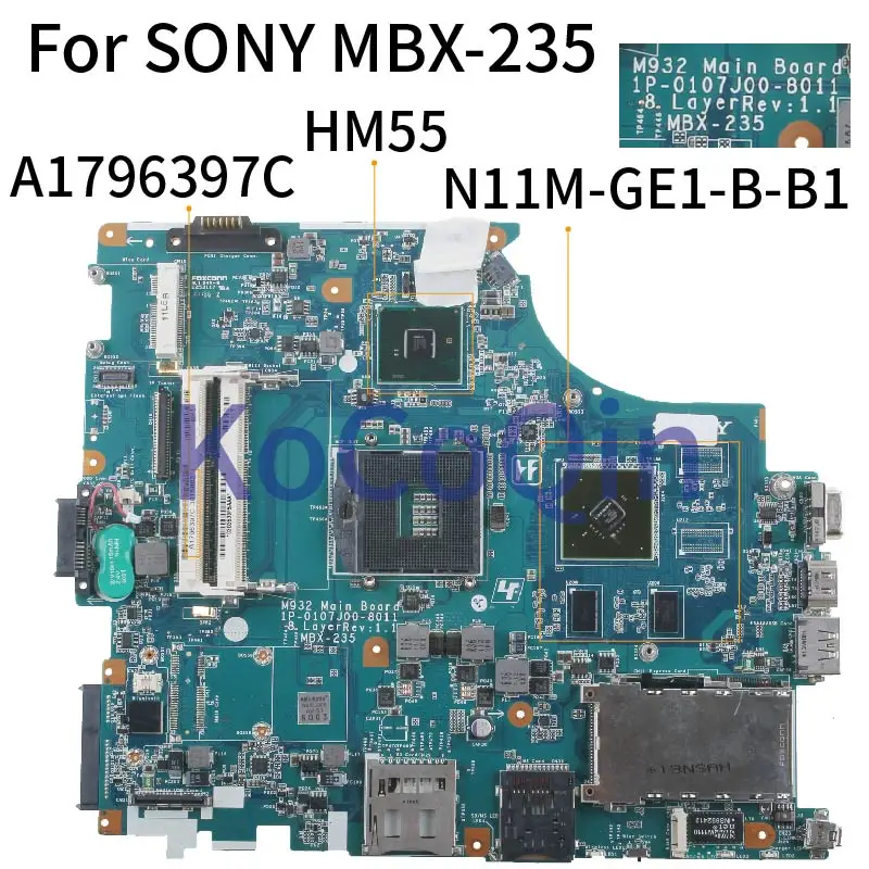KoCoQin Laptop motherboard For SONY VPCF1 MBX-235 Mainboard M932 1P-0107J00-8011 A1796397A HM55 N11M-GE1-B-B1