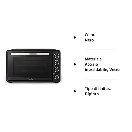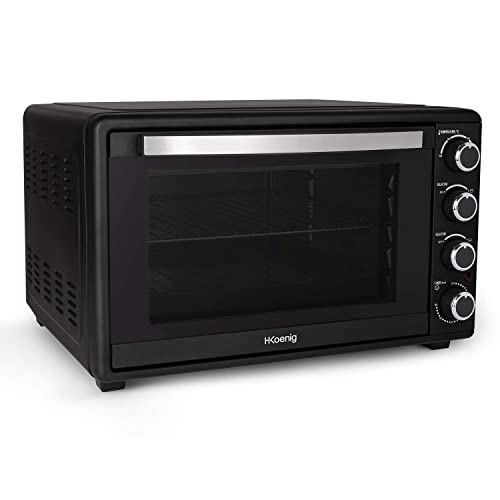 H.Koenig FO45 Mini Forno elettrico 45L Compatto Multifunzione Programmabile, fino a 230°, Timer 60 min, Spegnimento automatico, Porta in vetro, Griglia e vaschetta raccogli briciole, 2000W
