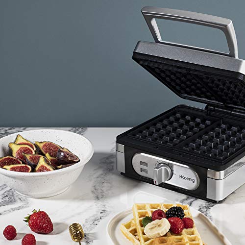 H.koenig GFX320 - Piastra per waffle elettrico, 2 pezzi, cottura omogenea, temperatura regolabile, 1400 W