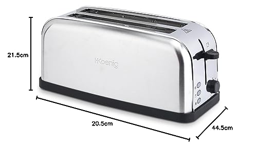 H.koenig TOAS28 Tostapane speciale per Baguette 2 fette, 7 livelli di doratura e scongelamento, Sistema "Extra high go up",1500 W, acciaio inox