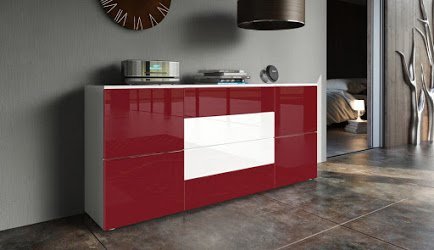 Kofkever Credenza moderna Dama cassa bianca e frontali bordeaux lucido