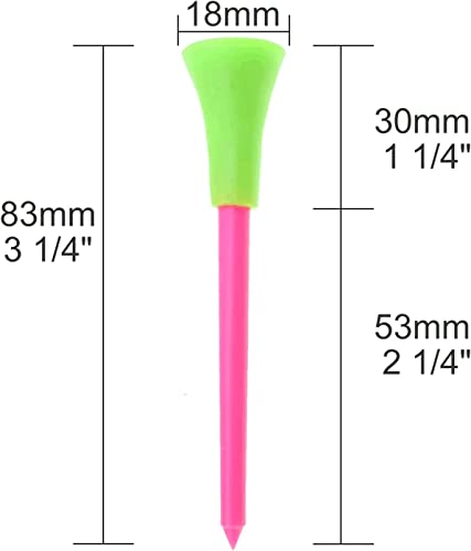 Kofull - Set di 50 tee da golf in plastica resistente, con cuscinetto in gomma di colore misto (3 1/4")