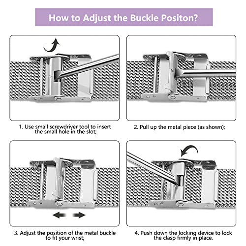 3. [Bracciale Regolabile] Presenta una speciale chiusura a fibbia, La fibbia pieghevole è stata aggiornata a un "doppio blocco" . regola facilmente la lunghezza del cinturino e mantiene l'orologio saldamente al polso.