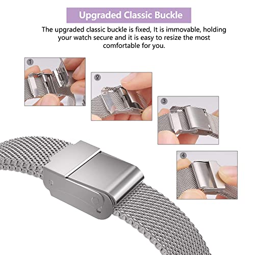 2. [Materiale Confortevole] Utilizzare materiale in acciaio inossidabile di classe superiore, tessuto da tutto l'acciaio, eliminando i difetti dei braccialetti in silicone che sono facili da rompere. nessun spigolo vivo e toccare la pelle come un fluido. resistente al sudore, confo rtevole, traspirante.