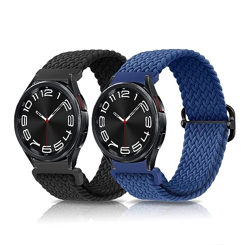 KoGiio 20mm Cinturino per Samsung Galaxy Watch 6 Classic 43mm 47mm/Watch 6 40mm 44mm, 【2 Pezzi】 Intrecciati Cinturini di Ricambio Elastico per Samsung Galaxy Watch 5 40mm 44mm/5 Pro 45mm Nero & Blu