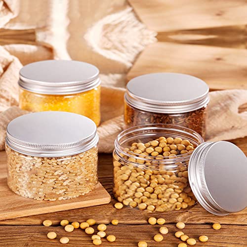 Alta qualità: questi barattoli trasparenti sono realizzati in plastica PE per uso alimentare, puliti, indossabili e durevoli. Rispetto ai barattoli di vetro, sono più leggeri e resistenti agli urti e agli urti. Puoi sciacquarli e usarli ripetutamente.