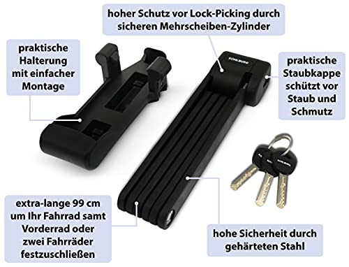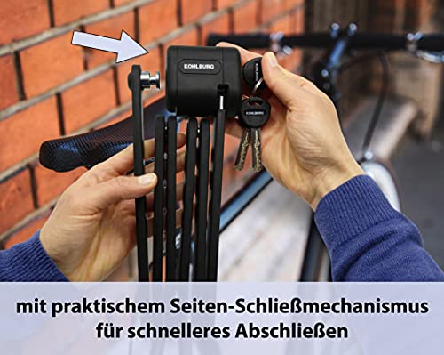 KOHLBURG Lucchetto Pieghevole Sicuro e Lungo - Lucchetto per Bicicletta con 99 cm Extra Lungo - Lucchetto in Acciaio temprato Alto Livello di Sicurezza - Lucchetto con Supporto per Bicicletta