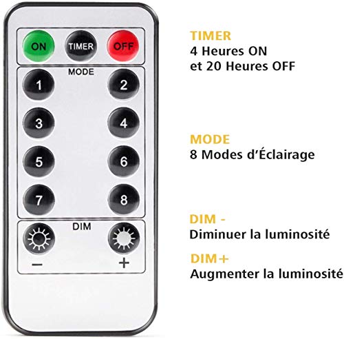 Grazie al telecomando, potete accendere e spegnere la ghirlanda a distanza, scegliere 8 programmi luminosi o regolare l'intensità della luce.