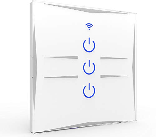Koiiko - Interruttore della luce smart, Wi-Fi, da parete, con controllo vocale con Alexa, Google Assistant e IFTTT, timer, pannello touch sensibile e app per il controllo remoto compatibile con iPhone e Samsung, colore: bianco, non richiede unità centrali, richiede cavo neutro, bianco 1800.00W, 240.00V