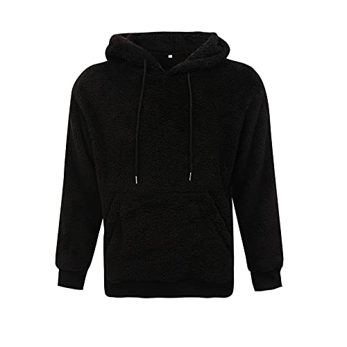Koitniecer Mens Fuzzy Sherpa Pullover Felpa con Cappuccio Felpe Inverno Spesso Caldo in Pile Tinta Unita con Cappuccio Top con Tasca A Canguro (Black, Small)