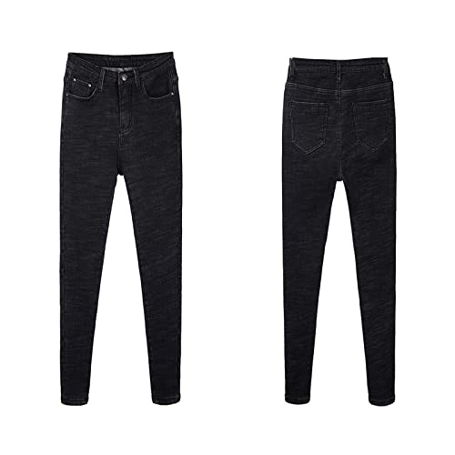 Koitniecer Jeans Foderati in Pile da Donna Pantaloni in Denim di Flanella Termica Pantaloni Invernali in Leggings Elasticizzati Aderenti Caldi con Tasca (Black, Medium)