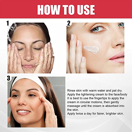 【Suitable for all Skin Types】We use a gentle formula. This whitening moisturizing cream does not irritate the skin and is especially gentle on the most sensitive skin and body areas. Make you more radiant and attractive.