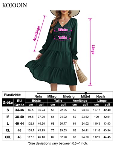 KOJOOIN Abiti Donna Casual a Maniche Lunghe con Scollo a V Elegante A-Line Abiti Lunghi Boho Abiti a Vita Alta Tunica Abito Tinta Unita Autunno