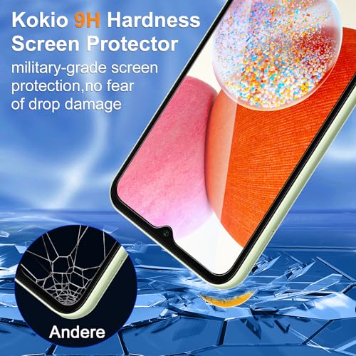 Kokio 3+3 Pezzi Pellicola Protettiva per Samsung Galaxy A14 4G/5G 3 Pezzi Pellicola Protettiva Anti Graffio con 3 Pezzi Vetro Temperato, HD Chiaro, Durezza 9H, Anti Graffi Protezione per Samsung A14
