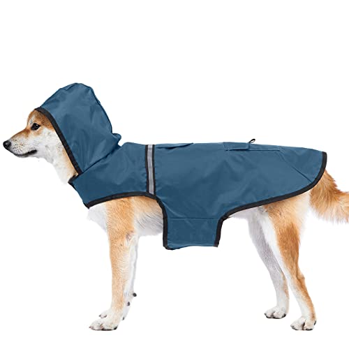 KoKoBin Impermeabile Cane Giacca riflettente per cani con cappuccio Foro del collo con cappuccio Super leggera e traspirante impermeabile per cani di taglia media e grande (blu grigiastro, M)