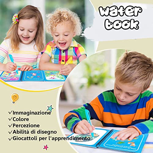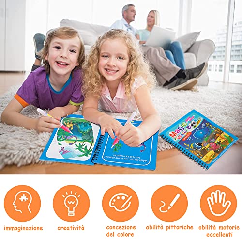 DISEGNO FACILE: Riempire la penna con acqua e passare la punta sulle magiche pagine bianche. I disegni si illuminano già di colori brillanti. Questa penna ad acqua è facile da riempire e tenere in mano per le mani dei più piccoli. Rispetto alla pittura tradizionale, questo libro da disegno magico è divertente e può mantenere pulite le mani e i vestiti del bambino.