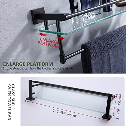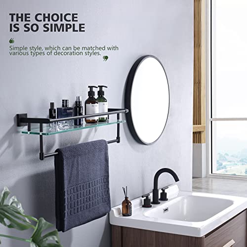 KOKOSIRI Mensola da bagno con porta asciugamani antiruggine 60CM mensola da bagno con guide a parete in acciaio inox, finitura nera, B1103BK
