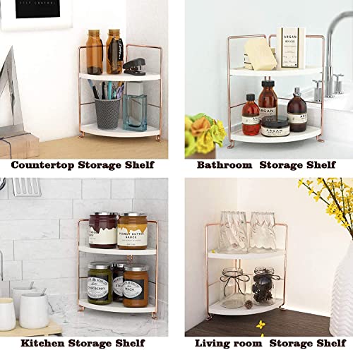 Koksi Organizzatore angolare da bagno a 2 livelli per bagno, cucina, WC, camera da letto, trucco, cosmetici, piano di lavoro (bianco e oro rosa)